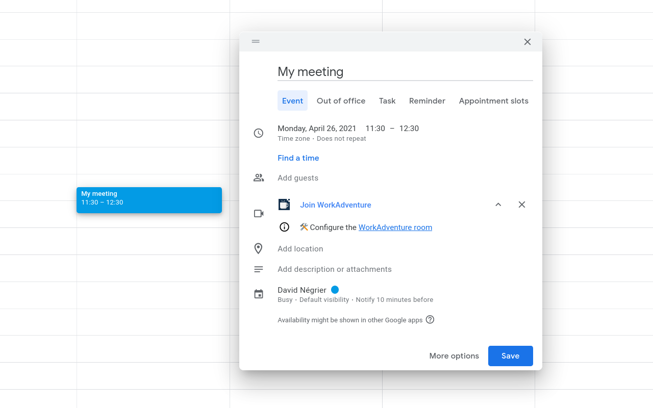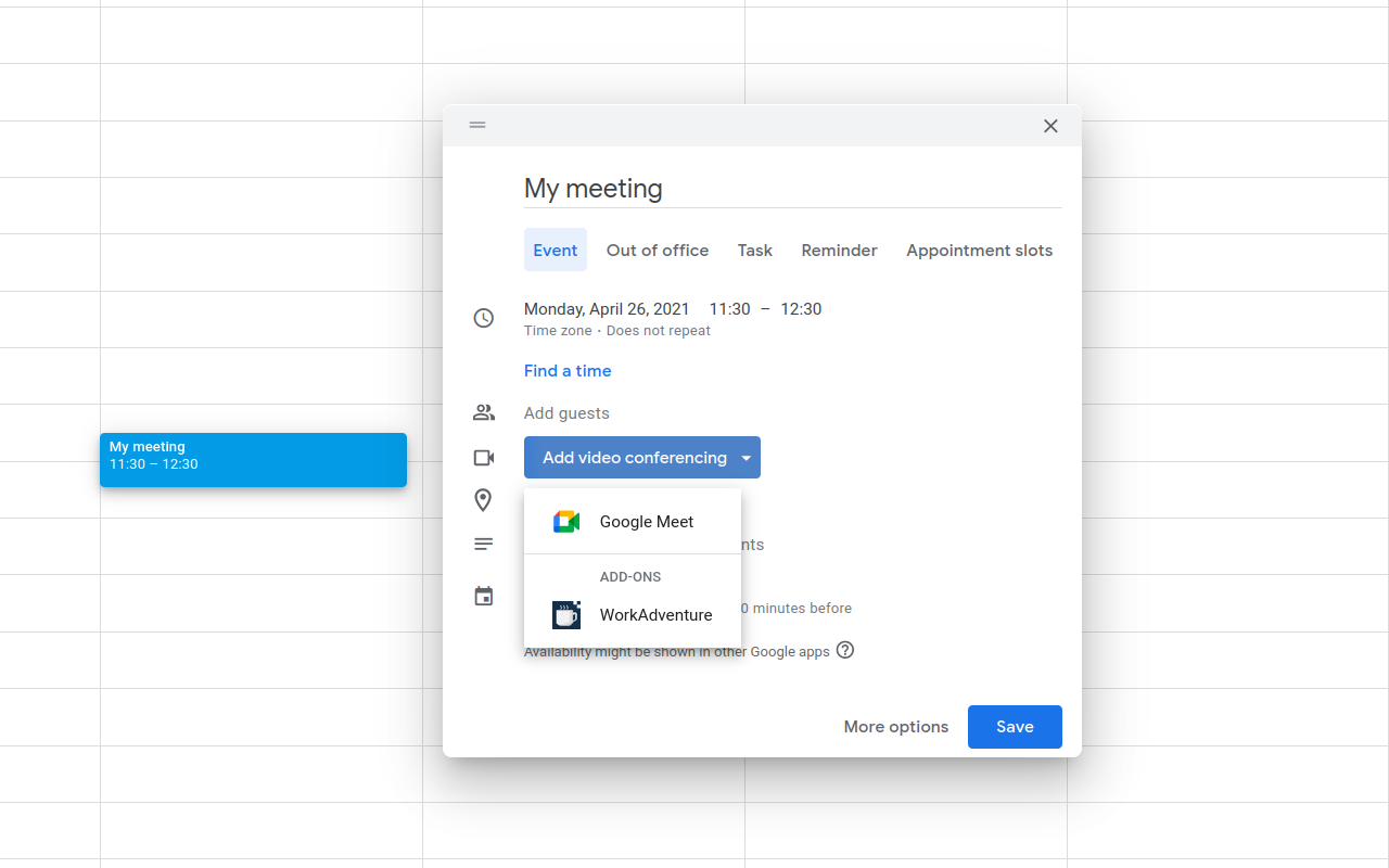 Your users can now schedule WorkAdventure rooms directly from Google Calendar