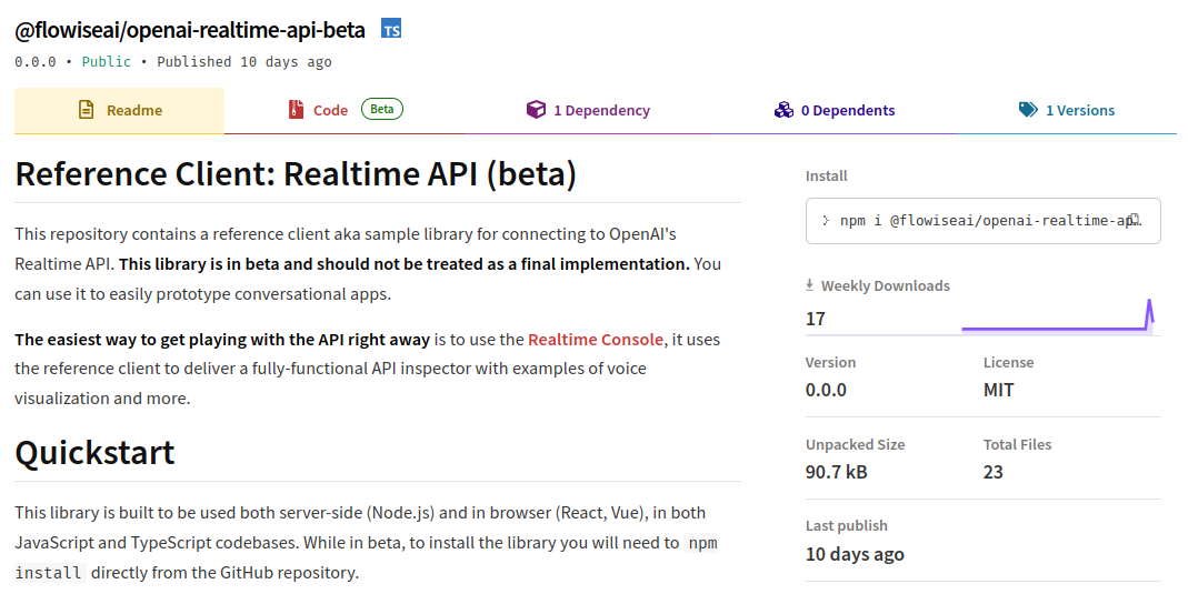 Yeah... version 0.0.0 with 17 weekly downloads. This is bleeding-edge technology!