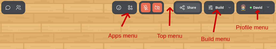 top: the button will appear directly in the action bar (default value).appsMenu: the button will appear in the "Apps" menu (center-left). The apps menu is typically used to display 3rd party application integrations.buildMenu: the button will appear in the "Build" menu (right). The build menu is typically used to display access to the map-editor and to important map-related features. This is typically reserved for map owners and administrators.profileMenu: the button will appear in the "Profile" menu (right-most).