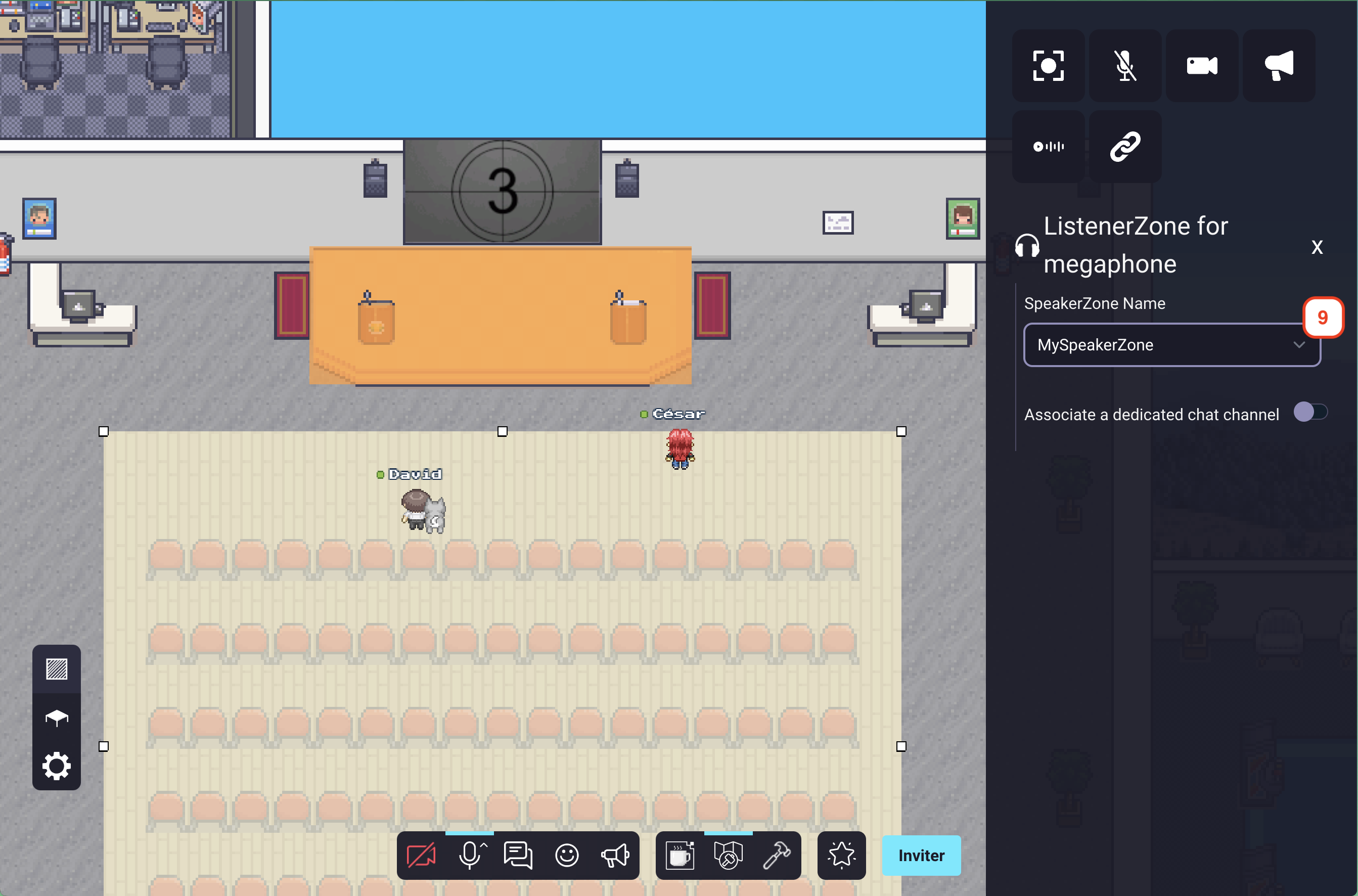 You're done ! Now, anyone in the audience will be able to hear/see the speakers that are on the podium/stage. When a user will enter the podium, he will trigger the megaphone directly and will stream to the audience associated with the podium.