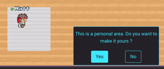 Once the area is claimed, the owner can add items to their personal space.