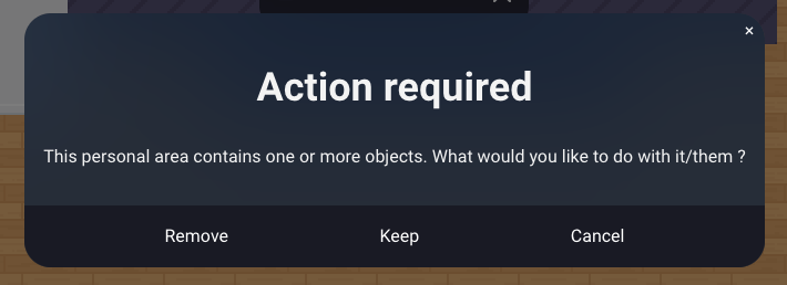If the area contains objects, a warning message will prompt you to decide how to manage these items.