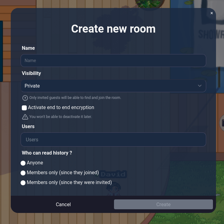 To keep WorkAdventure simple and avoid burdening first-time users, encryption is not enabled by default when you create a room or chat with a user. Enabling encryption is as easy as checking the "Active end-to-end encryption" box when creating a room.